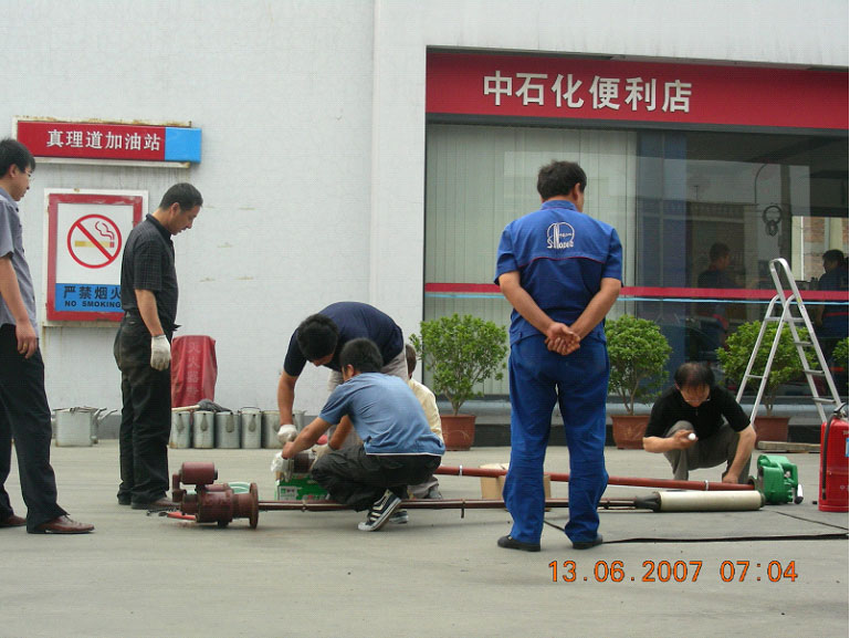 Бензозаправочная станция «Синопек», Чжэньлидао, г. Тяньцзинь (фото установки стандартных погружных топливных насосов на месте ведения работ)