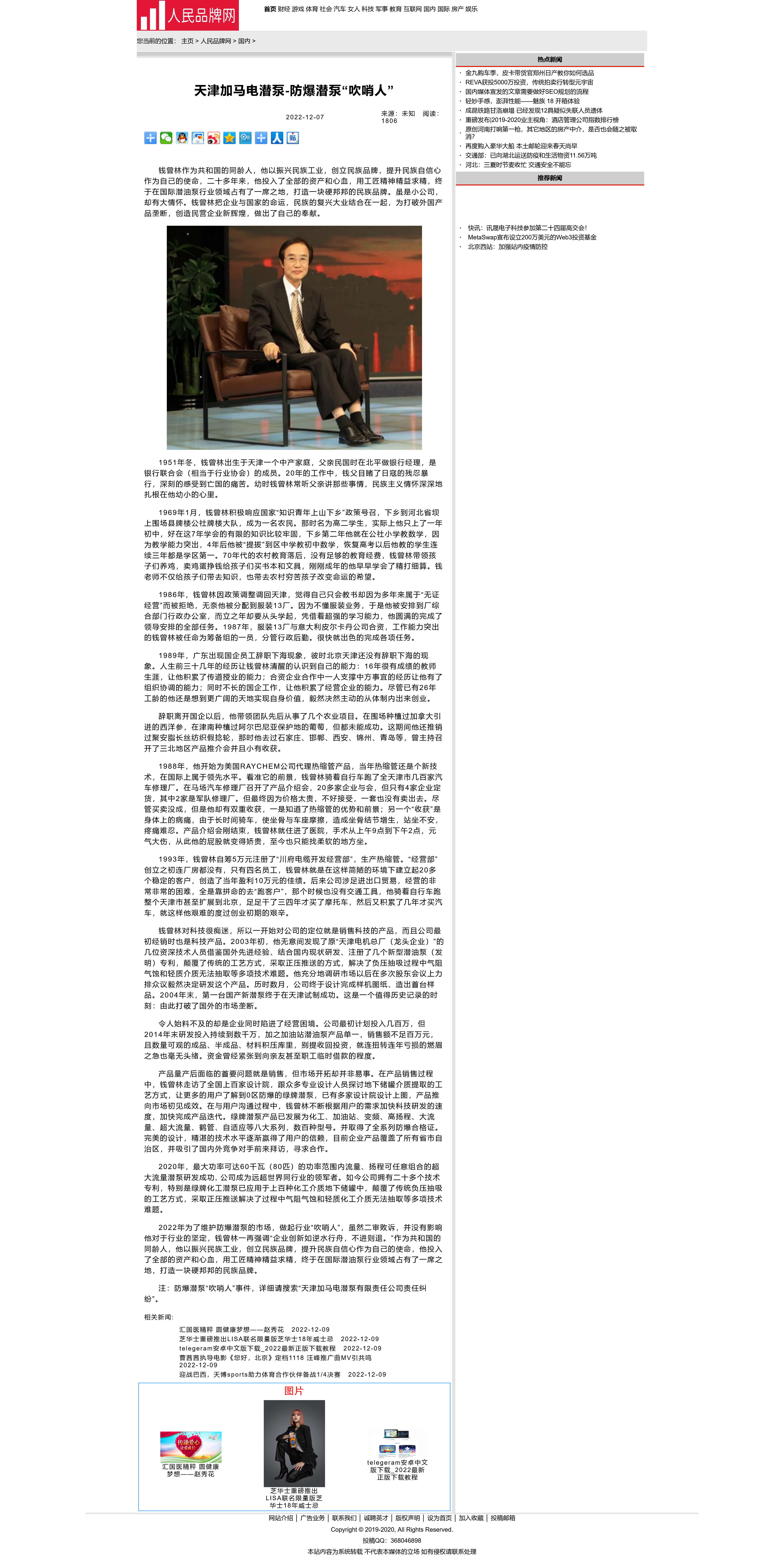 2022年为了维护防爆潜泵的市场,做起行业“吹哨人”,虽然二审败诉,并没有影响他对于行业的坚定,钱曾林一再强调“企业创新如逆水行舟,不进则退。”作为共和国的同龄人,他以振兴民族工业,创立民族品牌,提升民族自信心作为自己的使命,他投入了全部的资产和心血,用工匠精神精益求精,终于在国际潜油泵行业领域占有了一席之地,打造一块硬邦邦的民族品牌。
