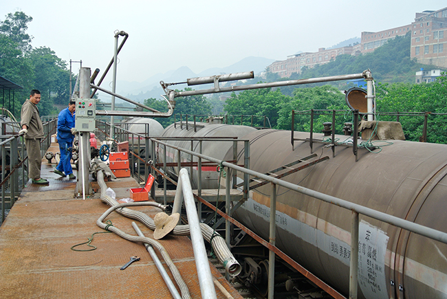 重庆市华铁物流有限公司(化工鹤管潜液泵为"苯"罐火车卸车的现场照片)